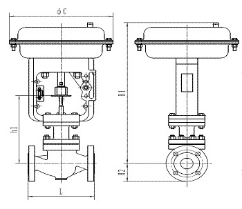 | 閥門尺寸 | L | H1 | H2 | h1 | C | 執(zhí)行機構(gòu) | | inch | mm | ANSI 150 PN16、25 | ANSI 300 PN40 | ANSI 600 PN64、100 | | 3/4 | 20 | 184 | 7.25 | 184 | 7.25 | 206 | 8.12 | 425 | 53 | 213 | 288 | ZHB-22 | | 1 | 25 | 184 | 7.25 | 184 | 7.25 | 210 | 8.25 | 435 | 58 | 218 | 288 | ZHB-22 | | 11/4 | 32 | 200 | 7.87 | 200 | 7.87 | 251 | 9.88 | 448 | 70 | 231 | 288 | ZHB-22 | | 1 1/2 | 40 | 222 | 8.75 | 222 | 8.75 | 251 | 9.88 | 448 | 75 | 231 | 288 | ZHB-23 | | 2 | 50 | 254 | 10 | 254 | 10 | 286 | 11.25 | 487 | 83 | 255 | 288 | ZHB-23 | | 21/2, , , , , , , , , | 65 | 276 | 10.88 | 276 | 10.88 | 311 | 12.25 | 628 | 93 | 311 | 360 | ZHB-34 | | 3 | 80 | 298 | 11.75 | 317 | 12.50 | 337 | 13.25 | 645 | 98 | 328 | 360 | ZHB-34 | | 4 | 100 | 352 | 13.88 | 368 | 14.50 | 394 | 15.50 | 656 | 115 | 328 | 360 | ZHB-34 | | 5 | 125 | 420 | 16.53 | 400 | 15.75 | 500 | 19.69 | 806 | 125 | 389 | 470 | ZHB-45 | | 6 | 150 | 451 | 17.75 | 473 | 18.62 | 508 | 20.00 | 857 | 143 | 440 | 470 | ZHB-45 | | 8 | 200 | 600 | 21.38 | 568 | 22.38 | 610 | 24.00 | 926 | 180 | 514 | 470 | ZHB-45 | ※由于產(chǎn)品改進和技術(shù)創(chuàng)新或者一些特殊要求,各種閥門的連接尺寸可能會有所變化,請聯(lián)系我司技術(shù)部,以得到新的產(chǎn)品資料。我們也可按照你的現(xiàn)場要求定做特殊的結(jié)構(gòu)尺寸的閥門。閥門的法蘭焊接坡口等尺寸連接按照各種標準的想關(guān)要求。