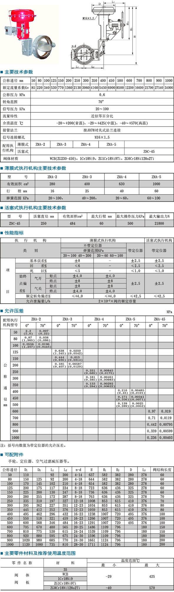 | 公稱通徑mm | |50|80|100|125|150|200|250|300|350|400| | | |450|500|600||700|800|900|1000| | | 公稱壓力MPa | 0.6 | | 介質(zhì)溫度`C | -20~+200(常溫),-40~+450(中溫),-40~+600(高溫) | | 閥體材質(zhì) | WCB(ZG230-450),1Cr18Ni9,ZG1Cr18Ni9Ti,ZG0Cr18Ni12Mo2Ti | |