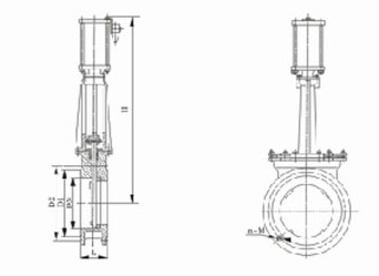 氣動刀形閘閥主要外形及連接尺寸(mm)