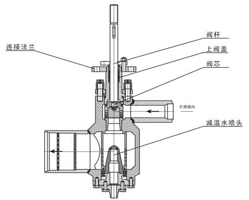 蒸汽經(jīng)過4級節(jié)流,噪音低。蒸汽先通過套筒和閥座,壓力降低了一部分。節(jié)流罩下端的噴嘴向上噴出高速冷卻水,冷卻水在節(jié)流罩中心被高壓蒸汽霧化和混合的過程中,進行充分的熱交換,從而使高溫蒸汽再節(jié)流罩內(nèi)完成降溫過程,然后通過節(jié)流罩,再通過兩個節(jié)流孔板,把蒸汽壓力降低到額定要求,由于蒸汽的減壓減溫都在同一閥體內(nèi)完成,故系統(tǒng)不另設專門的減溫器。