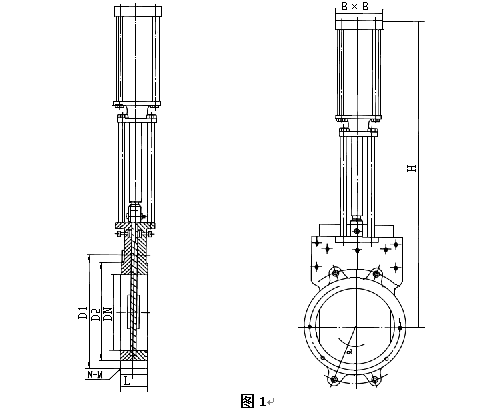 DN (mm) | L | D1 | D2 | B | H | n-M |