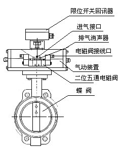氣動調(diào)節(jié)蝶閥由氣動活塞式執(zhí)行機(jī)構(gòu)與蝶閥組合構(gòu)成。(如圖GT系列氣動執(zhí)行機(jī)構(gòu)相同規(guī)格有雙作用式、單作用式(彈簧復(fù)位);)