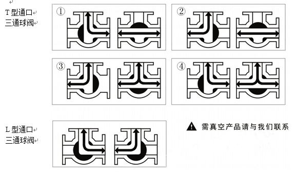 三通球閥標準閥芯有L型三通雙口孔道和T型三口孔道兩種,改變球芯與管道的相對角度,可以對三支管道流體實現不同的組合控制:T型孔道可起分流合流作用,L型孔道起配比作用,適用于液體、氣體、蒸汽等介質的配比調節與控制。