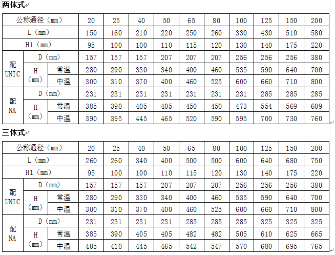 注:公稱壓力、公稱通徑超出列表范圍的產品可與本公司商洽解決