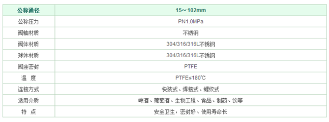 三、 衛(wèi)生級氣動球閥是由氣動角行程執(zhí)行器與衛(wèi)生級球閥裝配組成。亦稱氣動卡箍球閥,皆經(jīng)過了精密的檢驗流程和嚴格的品質(zhì)管理,流道經(jīng)過精密拋光和除菌處理,采用了全包的F4密封,沒有死角且容易清洗。衛(wèi)生級氣動球閥閥體采用不銹鋼精制而成,流道內(nèi)壁0.5um(240Grit)電子拋光,保持流體暢通無阻。密封面采用的全包PTFE沒有死角,保證衛(wèi)生。氣動卡箍球閥廣泛應(yīng)用于啤酒工程、食品工程、化學(xué)工程、制藥工程、生物工程和水處理工程等領(lǐng)域。