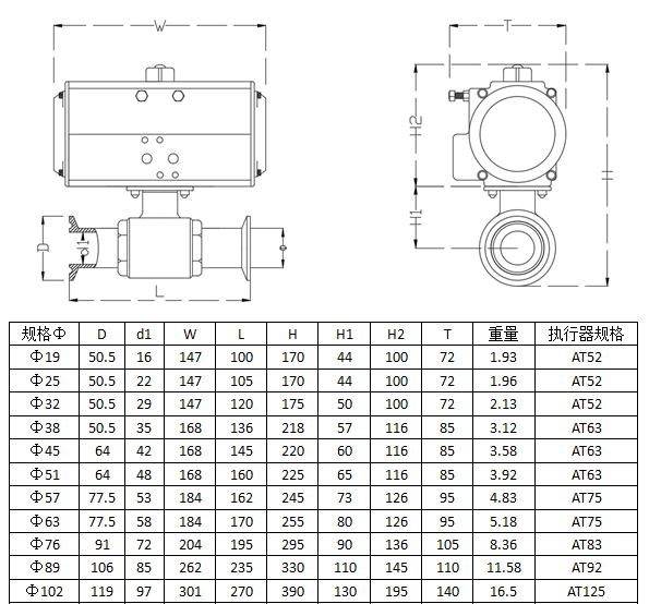 氣動三片式卡箍球閥是由角行程的氣動執(zhí)行機構(gòu)和球閥組成,適用于兩位切斷和調(diào)節(jié)的場合。氣動卡箍球閥閥體與執(zhí)行機構(gòu)的連接采用直連方式。