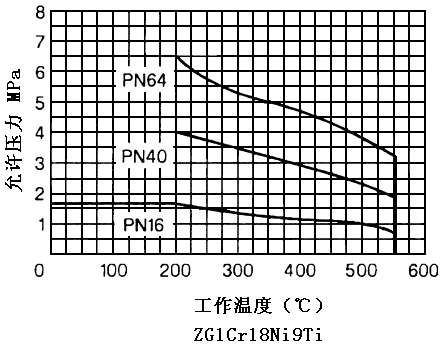 閥體工作溫度與允許壓力: