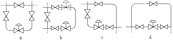 (3) 為便于現(xiàn)場維修及操作,調(diào)壓閥四周應(yīng)留有適當(dāng)空間,閥前后應(yīng)設(shè)置截止閥與旁路手動閥,如圖五所示。