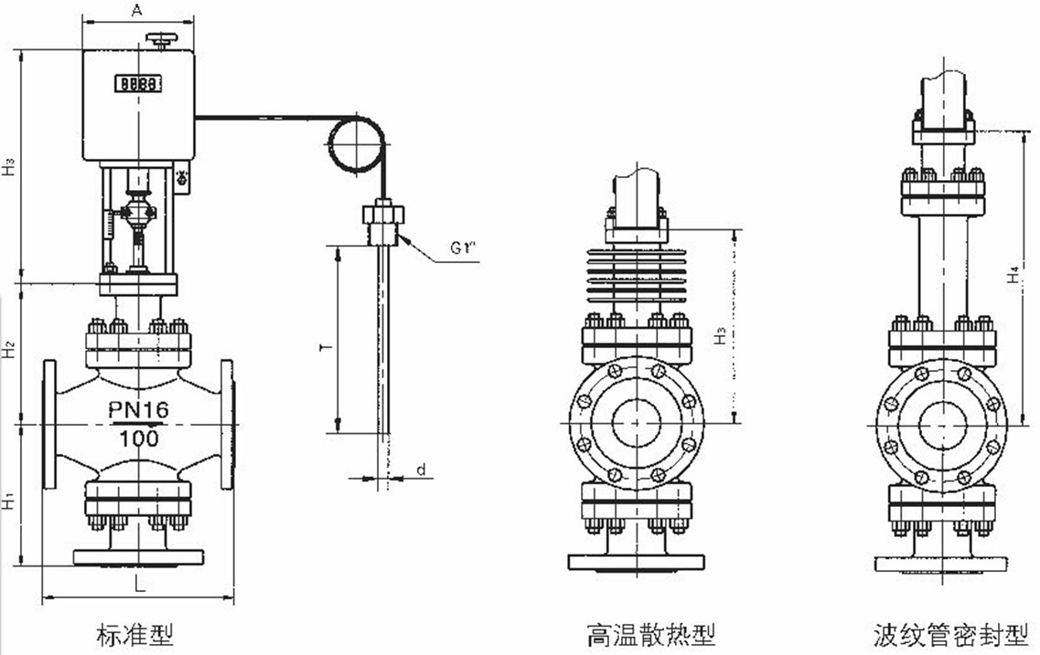 本系列產(chǎn)品閥體結(jié)構(gòu)有單座、套筒、三通等型式。產(chǎn)品公稱壓力等級有PN16、40、64,閥體口徑范圍DN20~200;控制溫度分段范圍0~350℃;泄漏量標(biāo)準(zhǔn)Ⅳ~Ⅵ級;流量特性有等百分比、直線;多個品種規(guī)格可供選擇。