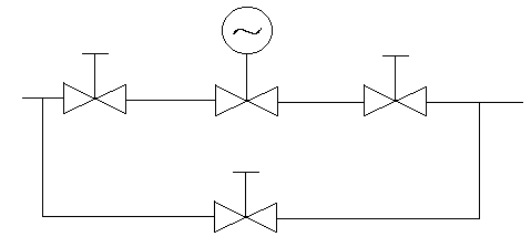 七 使用、維護及故障排除方法 1、安裝與使用 調(diào)節(jié)閥安裝不符合要求而出故障會造成巨大的浪費,反之,安裝得當(dāng),可保證正常開工并可延長使用壽命。減少維修工作量和獲得良好的系統(tǒng)控制性能。 (1)安裝調(diào)節(jié)閥總體上應(yīng)考慮以下方面: ① 安全:安裝過程中人員和設(shè)備的安全。 ② 控制性能:配管系統(tǒng)壓力損失應(yīng)與計算調(diào)節(jié)閥尺寸時所考慮的壓力損失一致,以保證所需的流量特性。進出口應(yīng)盡量保證足夠的直管段。 ③ 安裝位置:應(yīng)有足夠的空間便于操作人員手動操作(包括旁路操作)以及保證調(diào)節(jié)閥和附件的就地拆卸和維修的可能性。 ④ 調(diào)節(jié)閥組:一般在工藝過程配管中均安裝切斷閥的旁路閥與調(diào)節(jié)閥配成閥組,以適應(yīng)設(shè)備連續(xù)操作的需要。維修調(diào)節(jié)閥時用切斷閥隔離。用旁路閥調(diào)節(jié)。下面圖中推薦調(diào)節(jié)閥組布置方式。
